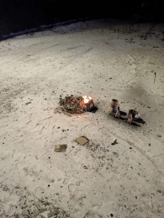 Brennende überreste Feuerwerksbatterie