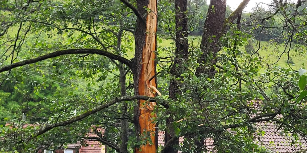 Durch ein Blitzeinschlag wurde ein Baum beschädigt. Bereich um den Baum wurde abgesperrt, keine weiteren Tätigkeiten waren erforderlich.