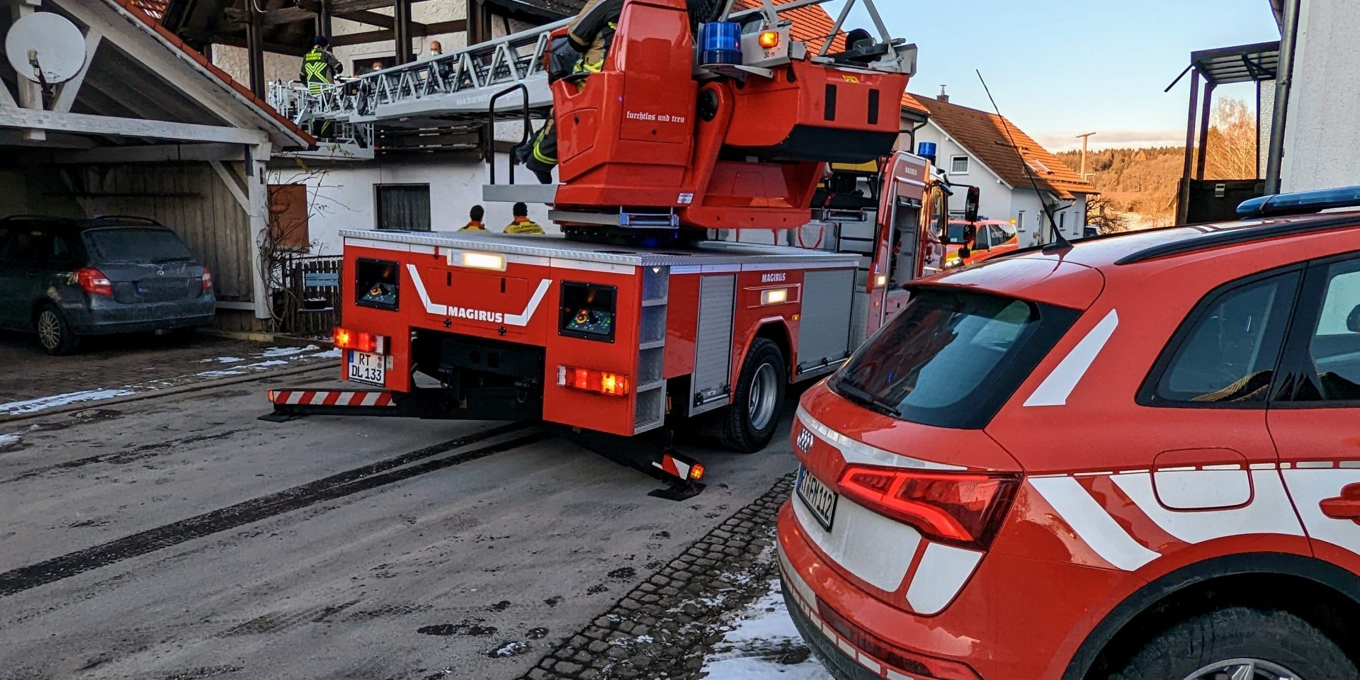 Nach einem medizinischen Notfall wurde eine Person mit Hilfe der Drehleiter aus dem Gebäude gerettet und auf den Boden verbracht.