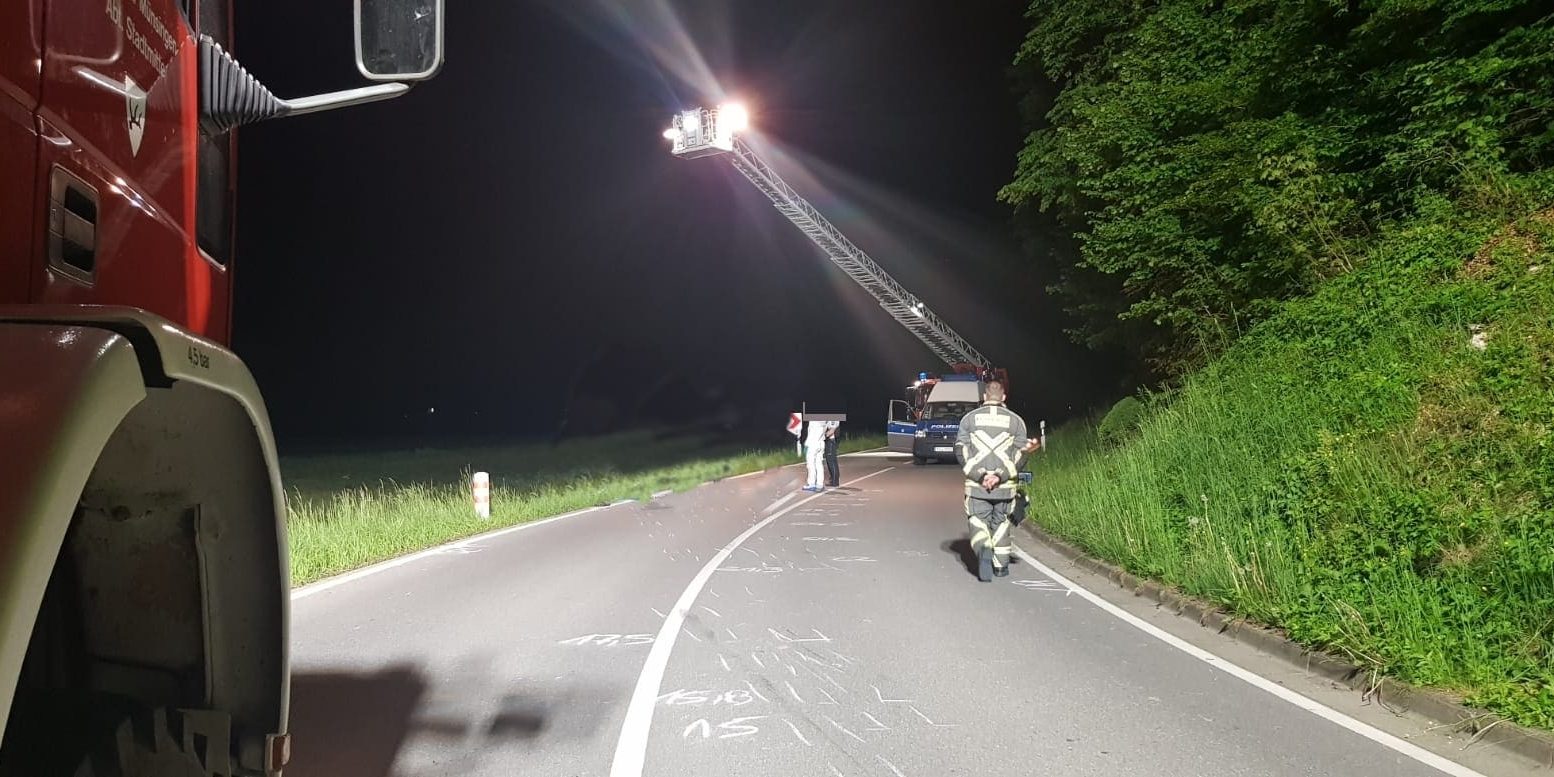 Nach einem tödlichen Verkehrsunfall wurde die Einsatzstelle ausgeleuchtet.