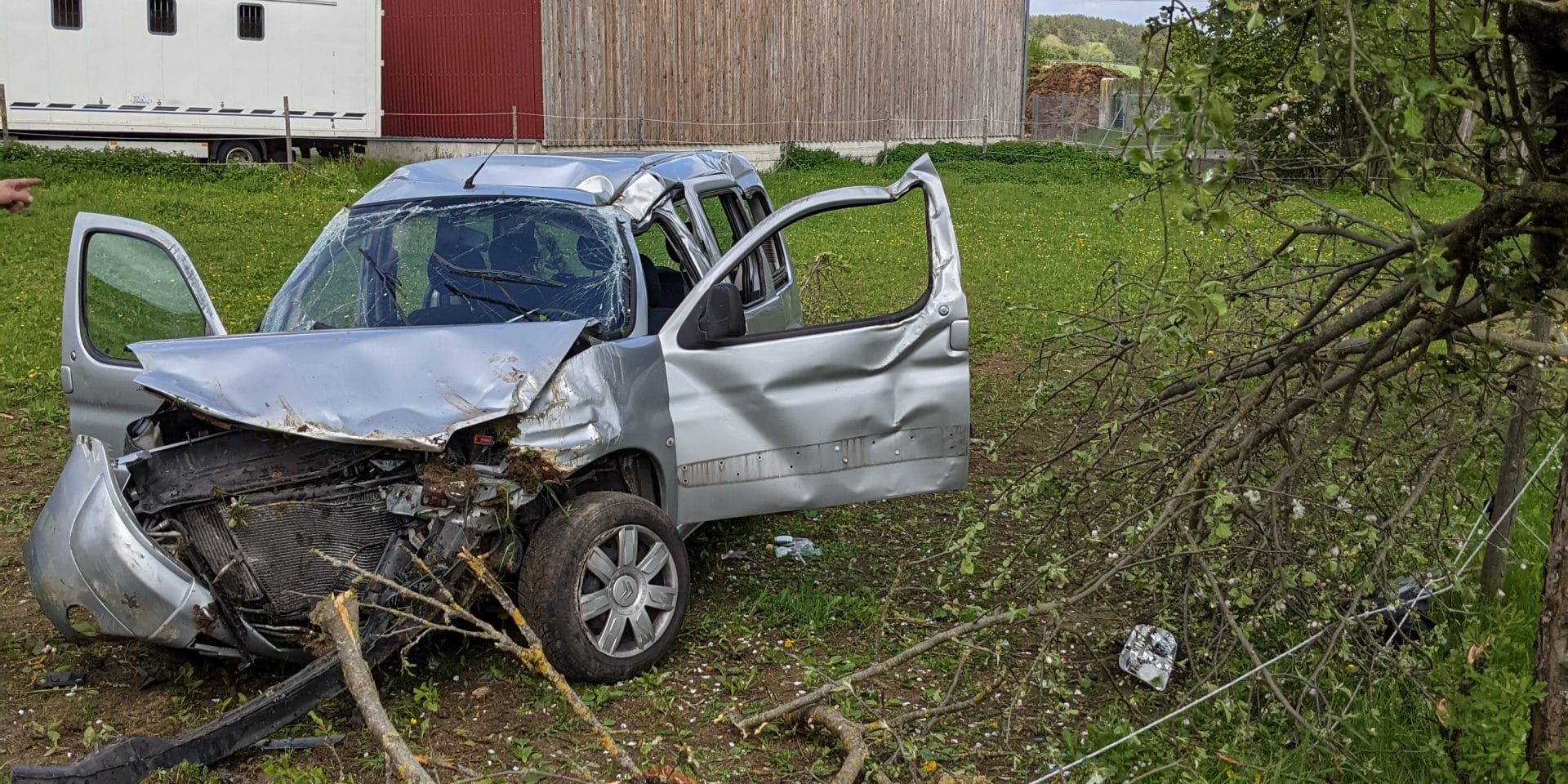 Die Person war entgegen der ersten Meldung nicht eingeklemmt. Die Feuerwehr stellte den Brandschutz sicher und nahm auslaufende Betriebstoffe auf.